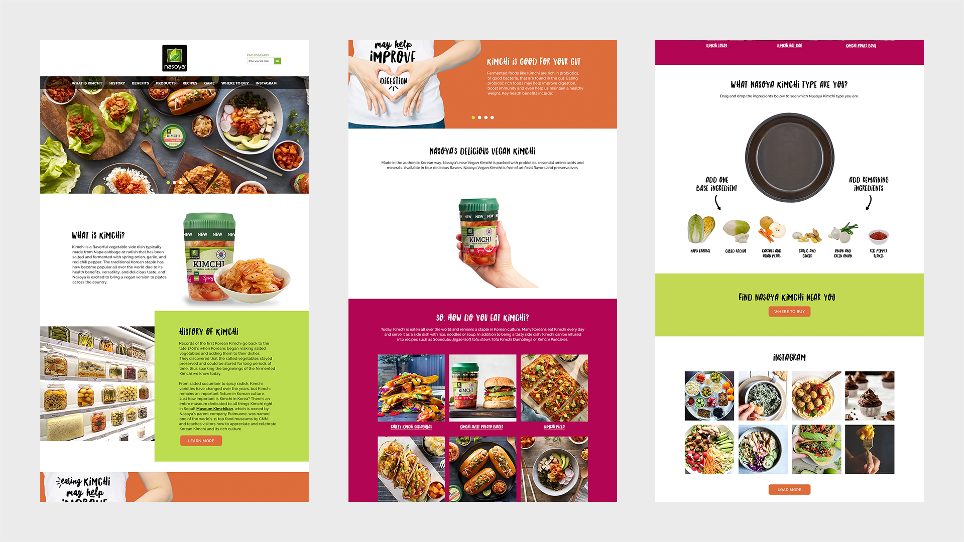 The landing page featured information about their new product line, recipes, the history of kimchi, it’s health benefits and an interactive kimchi game.
